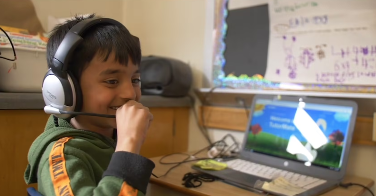 Once a week, volunteers call into a designated reading station installed in the classroom, and work with the student for 30 minutes. Together they read stories and play word games.